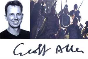 Geoff Allen signed photo; obtained through a friend. Mr. Allen was a Gondorian Soldier, an Orc and a Uruk-Hai for Lord of the Rings. I am not sure if he was in all three films or not.