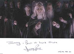 Larry Rew signed photos. Obtained through the mail. Mr. Rew was a Kingsman (Ring Bearer) in Lord of the Rings: Fellowship of the Ring.