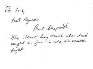 Paul Shapscott was one of the Wraiths (stuntmen) Aragon set afire in Lord of the Rings: Fellowship of the Rings