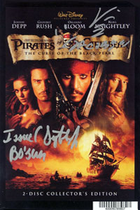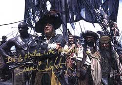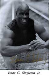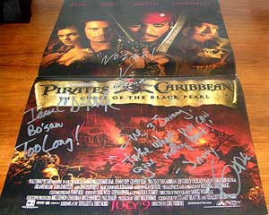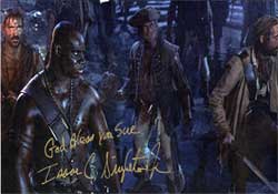 Isaac Singleton signed photos, video card place holder (also signed by Vince Lozano) and poster signed by Isaac Singleton and Gore Vidal as well; bottom photo is of Isaac Singleton (left) and Vince Lozano (right). Obtained through the mail and in person June 6th, 2008 in Norfolk VA (Harborfest). Mr. Singleton was the B' son in Pirates of the Caribbean. |
