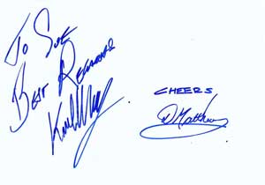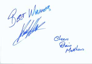 Karl Champley and Diane Matthews signed photos. Obtained through the mail. Mr. Champley was a sailor in Pirates of the Caribbean: Curse of the Black Pearl and you can check him out on DIY to the Rescue. I was so tempted to ask a home improvement question (my main one concerns molding; where to cut it off -bevel? straight? etc). But I behaved myself. My thanks to him and Ms. Matthews for signing! |