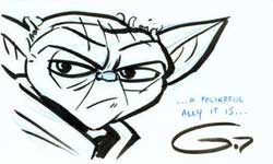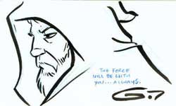 All and authors did many things, but for Star Wars purposes, Grant Gould worked on several new projects like a CIV limited edition print (seen it; VERY nice), he'll have a new card project coming out: DC Universe: Legacy and Star Wars 30th Anniversary, he is featured on StarWarsKids.com in the "How to Draw" section (it's not just for kids), and is doing a lot more as an officially sanctioned artist for Lucasfilm. If you know of any other Star Wars projects, let me know. Obtained through exchange. |
