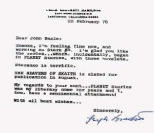 All artists and authors did many things, but for Star Wars purposes, Leigh Brackett worked on: Star Wars: Empire Strikes Back Screenplay If you know of any other Star Wars projects, let me know. Obtained through purchase