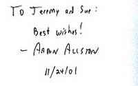 All artists and authors did many things, but for Star Wars purposes, Aaron Allston worked on Star Wars the New Jedi Order: Enemy Lines II, Rebel Stand, Star Wars: X-Wing #5: Wraith Squadron, Star Wars: X-Wing #6: Iron Fist, Star Wars: X-Wing #7, Solo Command, Star Wars: X-Wing #9 Starfighters of Adumar, Star Wars: The New Jedi Order, Book 11: Enemy Lines I: Rebel Dream and Star Wars: The New Jedi Order, Book 12: Enemy Lines II: Rebel Stand. . If you know of any other Star Wars projects, let me know. Obtained through the mail. |