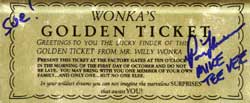 Paris Themmen signed the top photo and Golden Ticket (bottom) at the only appearance of all five kids together... it was a special convention. Though some have appeared elsewhere, this was the only time Peter Ostrum participated and all fiver were together again. Bottom photo of Ms. Nickerson taken at the convention. Obtained through Paris Themmen who was Mike Teevee. Paris was gun-toting Mike Teevee in Willy Wonka and the Chocolate Factory. He was shrunk by Wonkavision but had to leave when they couldn't return him to normal size.. |