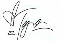 Tyra Banks (Super Model/TV Hostess) Source: Official Email letter and Official Autograph Collector Celebrity Autograph Authentication Guide July 2006 and August 2006 |