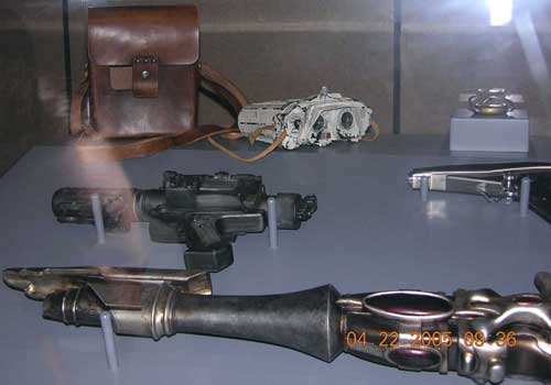 Below is a photo gallery of the Lucasfilm Archives, which was a display of costumes and props from the films. This was in a room at Star Wars Celebration III in Indianapolis, Indiana April 2005. Click on the Thumbnails for larger views. I'll have hi-res images available later on. |